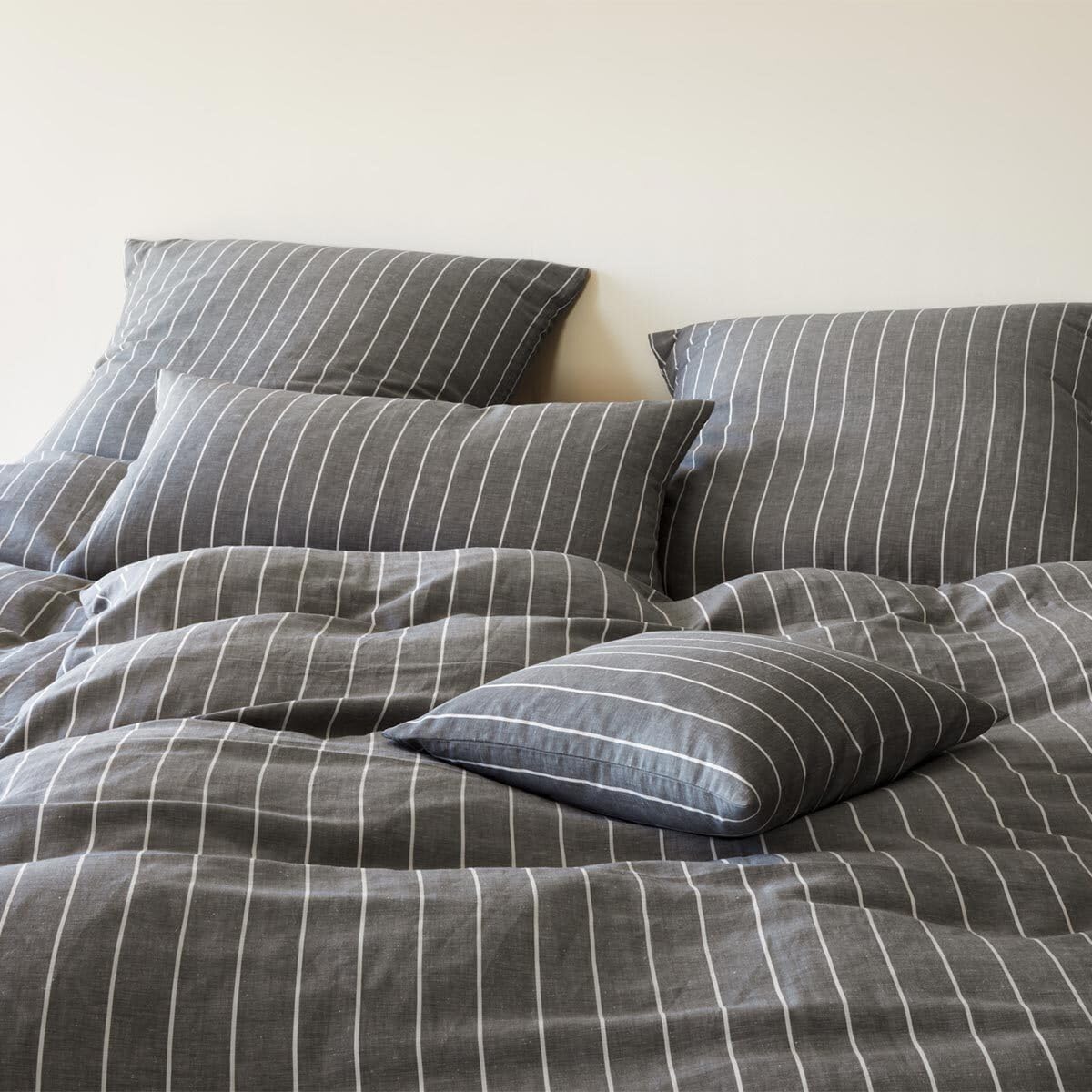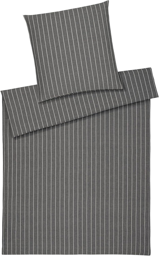 Die elegante Leinen Bettwäsche Humble 7122-09 besteht aus 50 % Baumwolle und 50 % Leinen, was für eine besonders luftige und leichte Qualität sorgt – ideal für den Sommer. Das feine, leicht gestreifte Design in Anthrazit verleiht Ihrem Schlafzimmer einen modernen, zurückhaltenden Look. Die bügelsarme Verarbeitung und der praktische Reißverschluss erhöhen den Komfort, während die Bettwäsche bei 60 Grad waschbar ist und so höchste Hygiene gewährleistet.